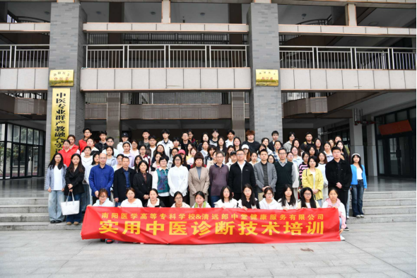 4 月11日上午,南阳医学高等专科学校联合广东清远郎中堂健康服务有限公司举办实用中医诊断技术培训开班仪式。河南省医药行业协会职业教育分会秘书长耿广平、南阳医专教务处处长李明哲、广东清远郎中堂健康服务有限公司董事长马少荣,校企相关负责人及全体参训师生参加仪式。